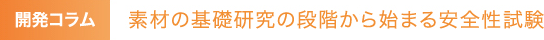私たちは、素材の基礎研究の段階から、「安全性」を確認しています。この確認だけで2年もの月日を費やすこともあります。その部分をクリアしなければ当然、製品開発も断念しなくてはなりません。私たちは食品研究所、バイオ&ファインケミカル研究所と連携することにより高いレベルの「安全性」を追求しています。オリジナリティの高い素材を研究しているだけに、「安全性」への確認に漏れがあってはなりません。