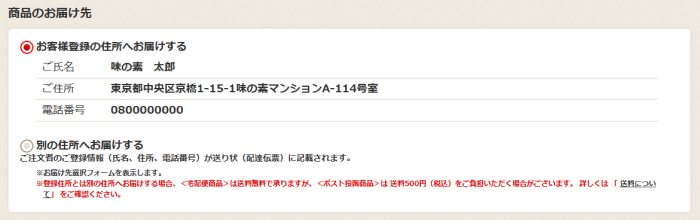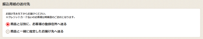 ※「商品と一緒に指定したお届け先へ送る」を選ぶと、振込用紙が商品と一緒にお届けされます。