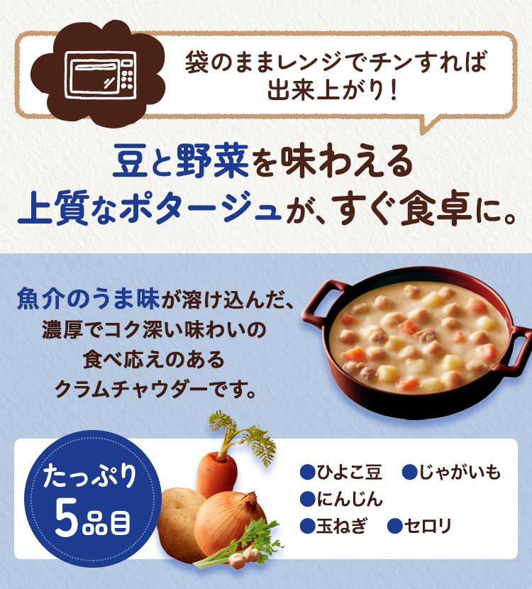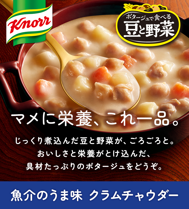 「クノール®」ポタージュで食べる豆と野菜 クラムチャウダー