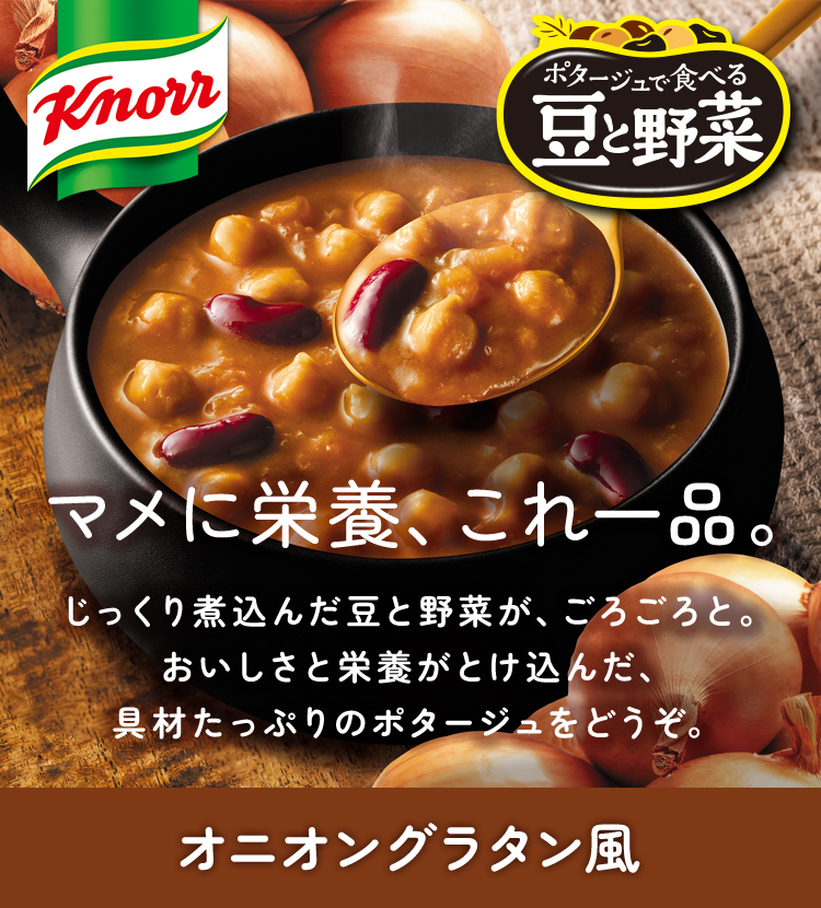 「クノール®」ポタージュで食べる豆と野菜 オニオングラタン風