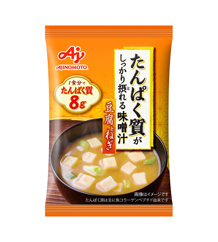 ・原材料名コラーゲンペプチド(国内製造)、粉末味噌、乾燥豆腐、デキストリン、乾燥ねぎ、かつお節粉末、乳糖、かつおエキス、砂糖、酵母エキス、でん粉、大豆たん白加水分解物、小麦・大豆発酵調味料/調味料(アミノ酸等)、豆腐用凝固剤