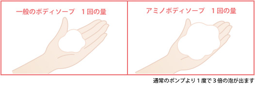 『アミノボディソープ』の容器を3~4プッシュし、泡をそのまま手のひらにとります。