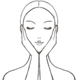 ■使用方法:額、鼻、あご、両頬に適量をおき、矢印の方向に弧を描くように手をすべらせてから軽くプッシュします。お肌が手に吸いついたら、お手入れ完了のサインです。
