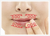 『アミノクレンジングジェル』を指の腹で、外側から内側に円を描くように口紅になじませます。しっかりなじんだら、コットンを4つ折りにし、きれいな面で丁寧にメイクをふき取ります。