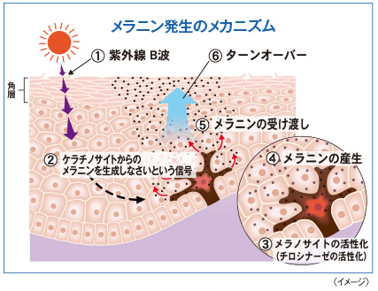 ★美白とはメラニンの生成を抑え、シミ・そばかすを防ぐことです。