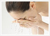 顔全体を包むように、こすらず、水か人肌程度のぬるま湯でしっかり洗い流します。