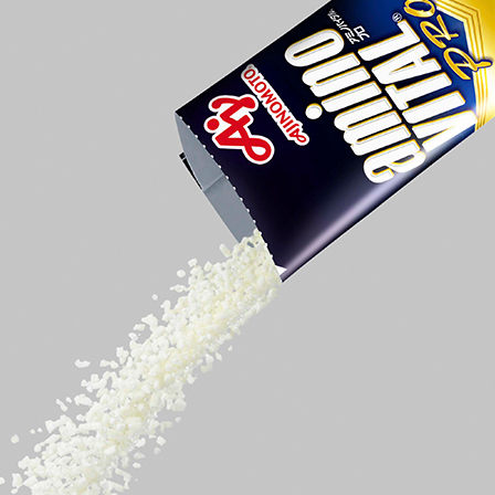 「アミノバイタル」は、アミノ酸の研究開発に約100年、医療領域の研究でも約50年の歴史をもつ味の素KKが「スポーツにアミノサイエンス」をコンセプトに、長年培った開発・製造技術をスポーツ分野に展開したことから誕生しました。アミノ酸の中でも運動のエネルギー源として注目されているバリン、ロイシン、イソロイシンという分岐鎖アミノ酸(BCAA)は、みずからをエネルギー源として、動かすカラダに欠かせない重要な栄養素です。日々の生活をもっとアクティブに過ごしたい、カラダを動かすことを楽しみたい、そんなあなたをサポートします。