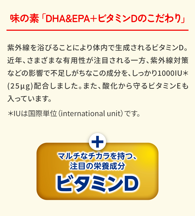 味の素「DHA&EPA+ビタミンD」のこだわり