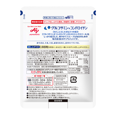 味の素(株)「グルコサミン&コンドロイチン」は発売以来、「億劫だった庭仕事が苦にならなくなった」、「趣味の登山や、ふだんの家事が軽快になり、生活の質が格段に向上しました」、「旅行を満喫できるようになりました」などなどお客様から多くのお喜びの声をいただいています。このようなお喜びの声をいただくことは私どもにとって何より幸せです。