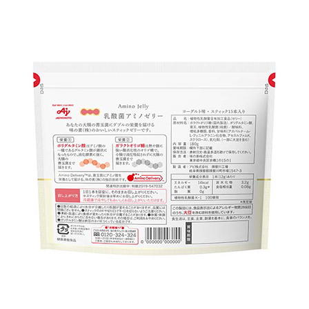 ガラクトオリゴ糖(国内製造)、ポリグルタミン酸、寒天、植物性乳酸菌(殺菌)/酸味料、増粘多糖類、香料、甘味料(アスパルテーム・L-フェニルアラニン化合物、アセスルファムK、スクラロース)、乳化剤、(一部に大豆を含む)
