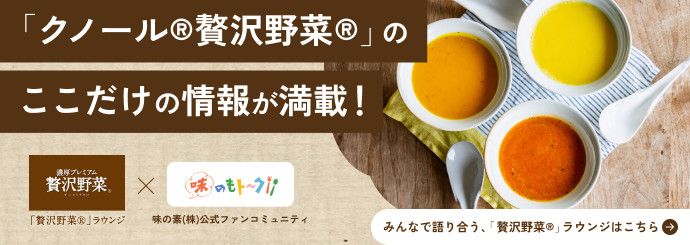 野菜がたっぷり溶け込んでいるので、手作りのような口当たりと、濃厚で食べ応えのある美味しさが楽しめます。 - 「クノール ®贅沢野菜 ®」シリーズはどうやって食べるのですか。(上手な作り方を教えてください。)
